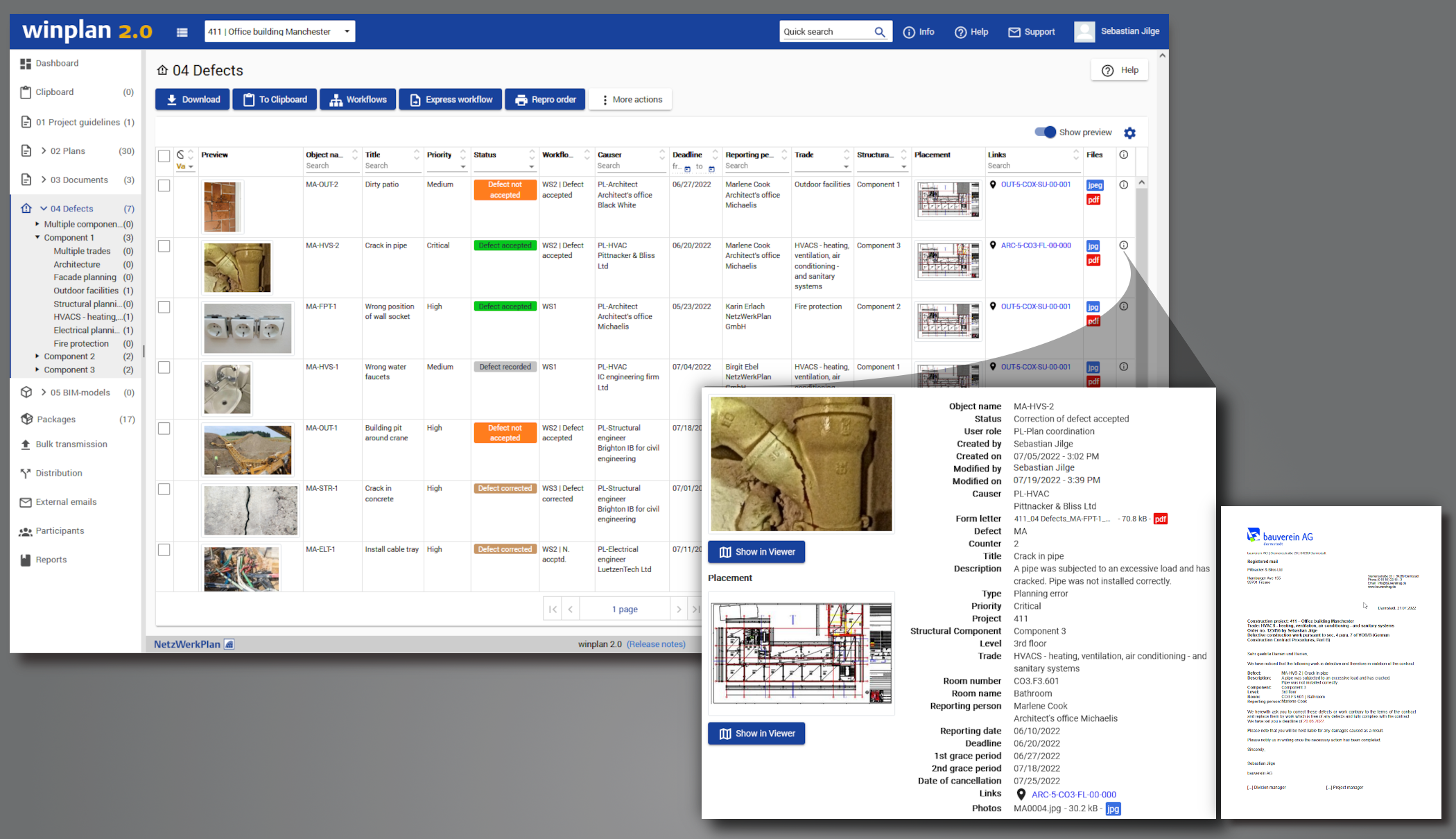 - Use the winplan 2.0 app to record any defects on your mobile end device directly on-site.